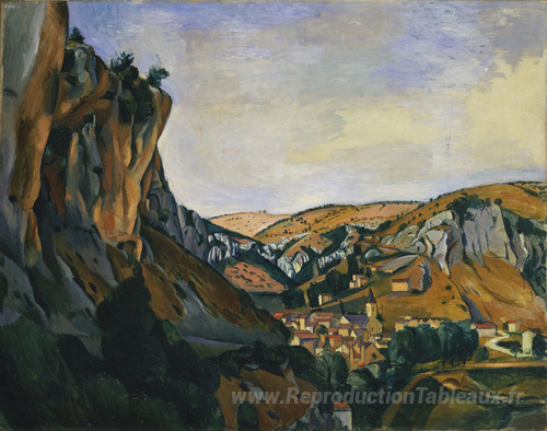 Nous vous proposons une reproduction artisanale sur toile du célèbre tableau 'Valley of the Lot à Vers' de Andre Derain, provenant du Musée de la Reproduction.