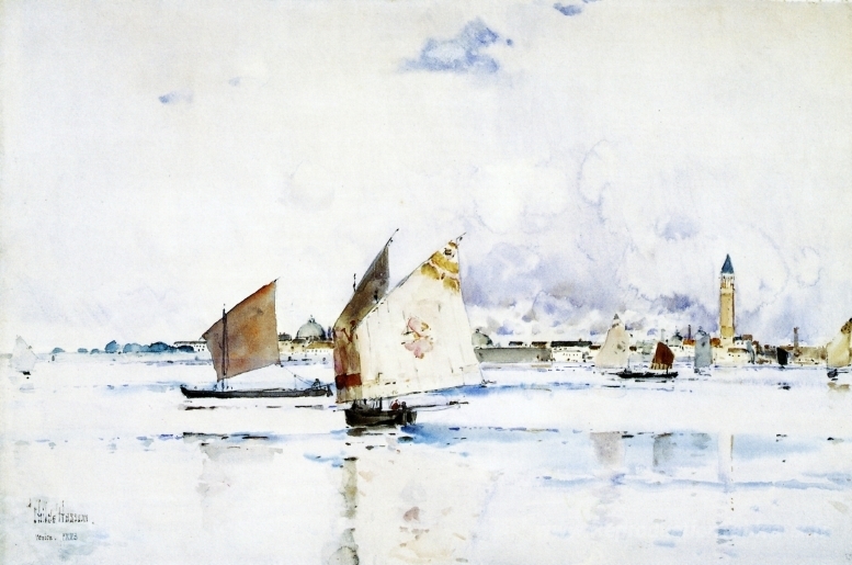 Nous vous proposons une reproduction artisanale sur toile du célèbre tableau 'Venise' de Childe Hassam, provenant du Musée de la Reproduction.