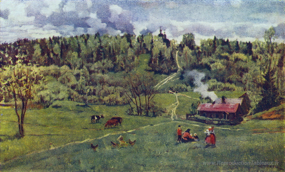 Nous vous proposons une reproduction artisanale sur toile du célèbre tableau 'Verde maggio' de Konstantin Yuon, provenant du Musée de la Reproduction.