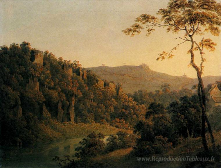 Nous vous proposons une reproduction artisanale sur toile du célèbre tableau 'Voir dans Matlock Dale, en regardant vers l'escarpe de rock noir' de Joseph Wright, provenant du Musée de la Reproduction.