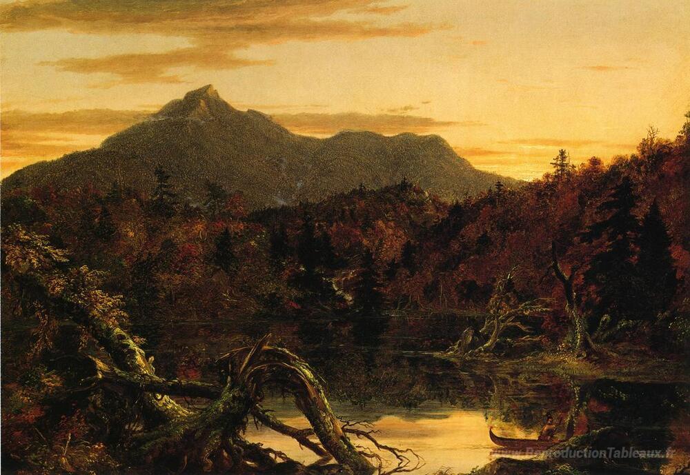 Nous vous proposons une reproduction artisanale sur toile du célèbre tableau 'Vue d'automne Twilight de Copway Peak (Mount Chocorua, New Hamps' de Thomas Cole, provenant du Musée de la Reproduction.
