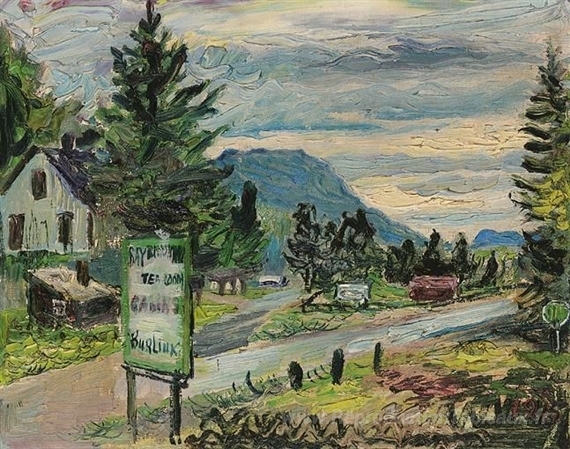 Nous vous proposons une reproduction artisanale sur toile du célèbre tableau 'Vue de Burliuk Estate, États-Unis' de David Burliuk, provenant du Musée de la Reproduction.