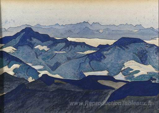 Nous vous proposons une reproduction artisanale sur toile du célèbre tableau 'Vue de Jelar LA' de Nicholas Roerich, provenant du Musée de la Reproduction.