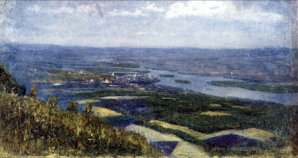 Nous vous proposons une reproduction artisanale sur toile du célèbre tableau 'Vue de Krasnoyarsk depuis Knoll' de Vasily Surikov, provenant du Musée de la Reproduction.