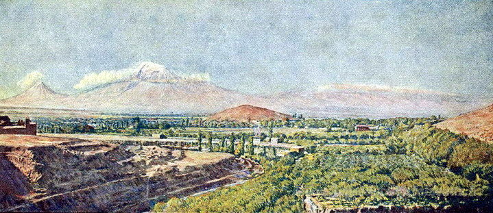 Nous vous proposons une reproduction artisanale sur toile du célèbre tableau 'Vue de la vallée Ararat' de Ilya Mashkov, provenant du Musée de la Reproduction.