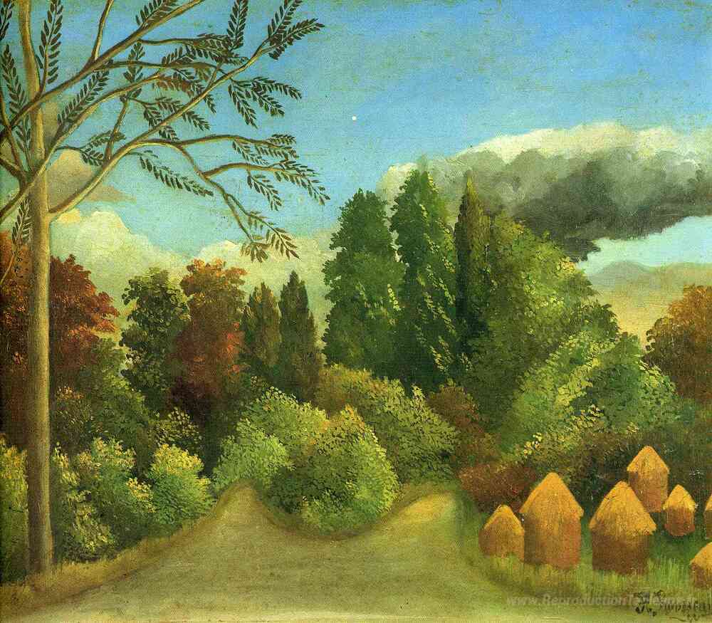 Nous vous proposons une reproduction artisanale sur toile du célèbre tableau 'Vue des rives de l'Oise' de Henri Rousseau, provenant du Musée de la Reproduction.