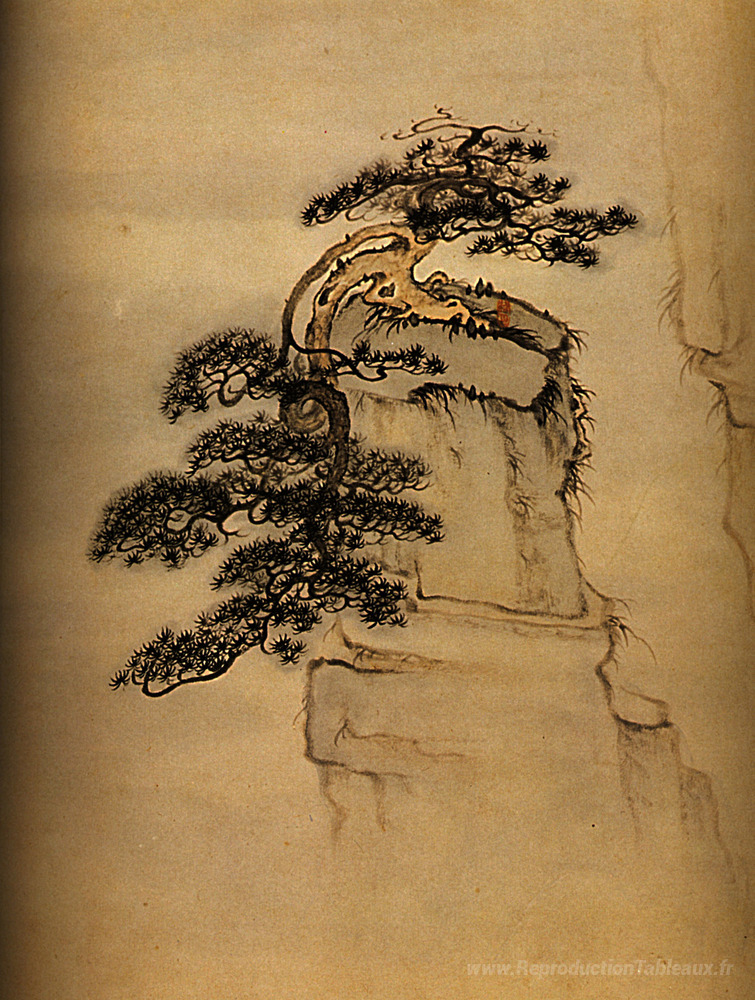 Nous vous proposons une reproduction artisanale sur toile du célèbre tableau 'Vue du mont Huang' de Shitao, provenant du Musée de la Reproduction.