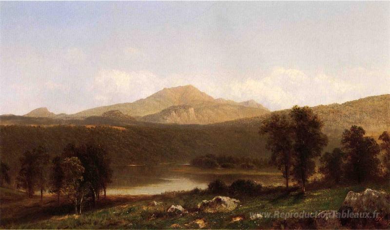 Nous vous proposons une reproduction artisanale sur toile du célèbre tableau 'Vue du mont Lafayette, New Hampshire' de David Johnson, provenant du Musée de la Reproduction.