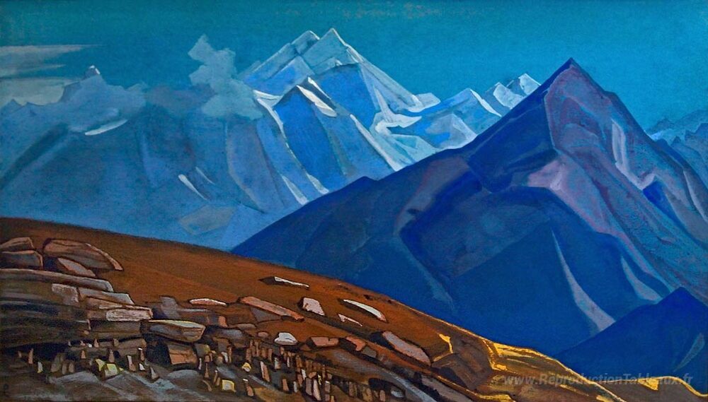 Nous vous proposons une reproduction artisanale sur toile du célèbre tableau 'Vyas Kund' de Nicholas Roerich, provenant du Musée de la Reproduction.