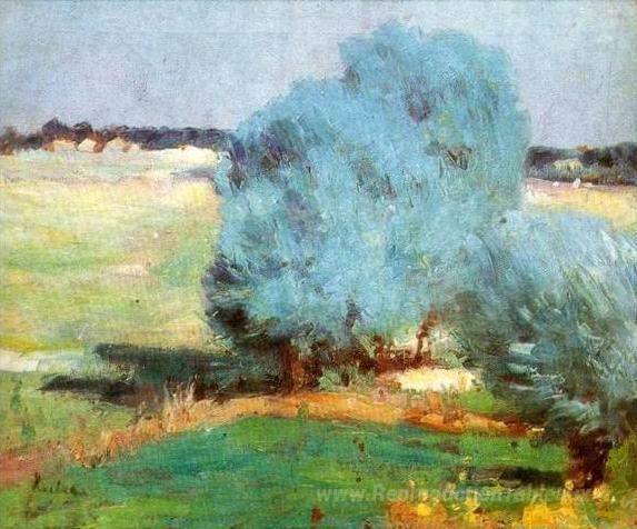 Nous vous proposons une reproduction artisanale sur toile du célèbre tableau 'Willows de Chiajna' de Stefan Luchian, provenant du Musée de la Reproduction.