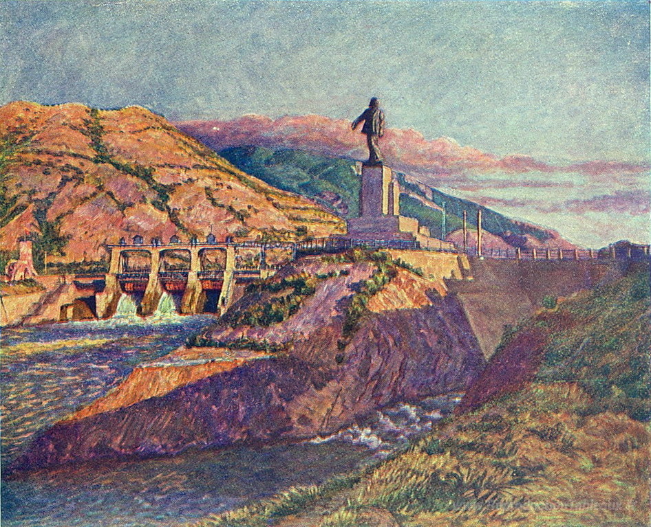 Nous vous proposons une reproduction artisanale sur toile du célèbre tableau 'Zages et une statue de Lénine' de Ilya Mashkov, provenant du Musée de la Reproduction.