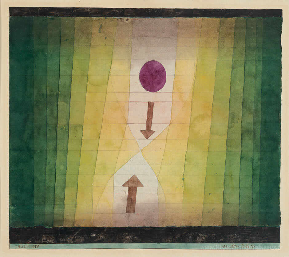Nous vous proposons une reproduction artisanale sur toile du célèbre tableau 'Avant le blitz' de Paul Klee, provenant du Musée de la Reproduction.