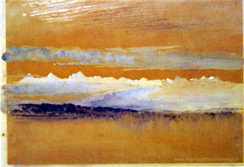 Nous vous proposons une reproduction artisanale sur toile du célèbre tableau 'Dawn à Neuchatel' de John Ruskin, provenant du Musée de la Reproduction.