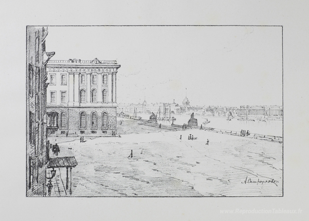 Nous vous proposons une reproduction artisanale sur toile du célèbre tableau 'Académie des arts' de Anna Ostroumova-Lebedeva, provenant du Musée de la Reproduction.