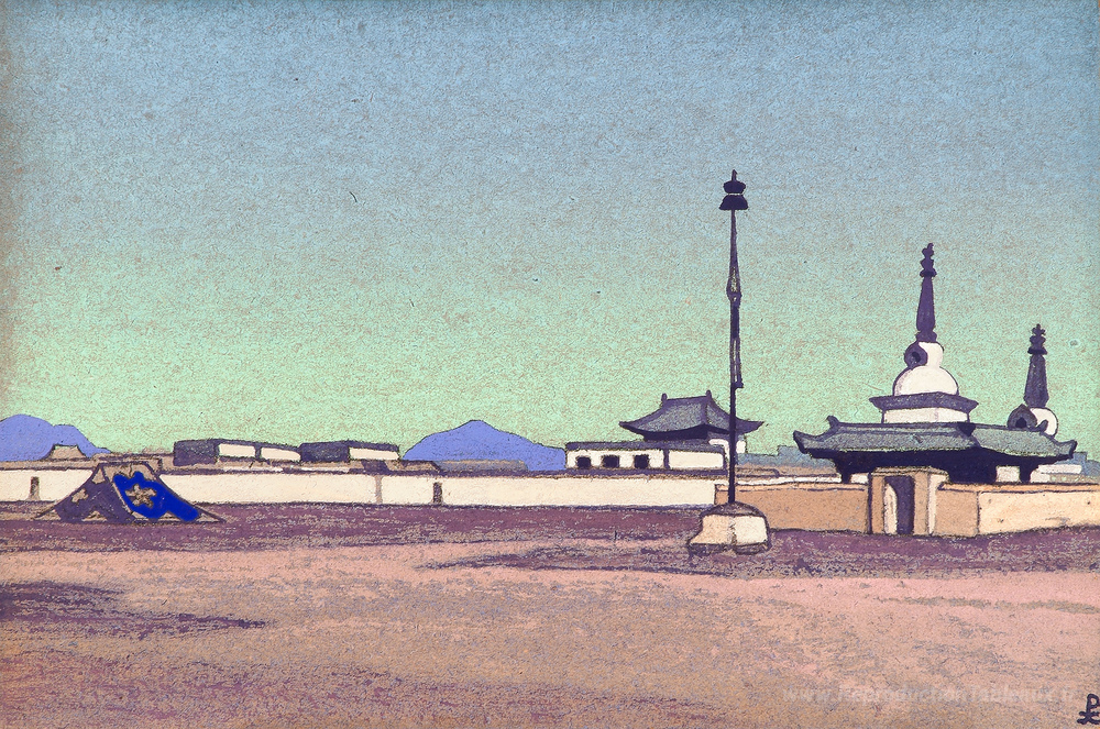 Nous vous proposons une reproduction artisanale sur toile du célèbre tableau 'Batuhalka, la capitale de la Mongolie intérieure' de Nicholas Roerich, provenant du Musée de la Reproduction.