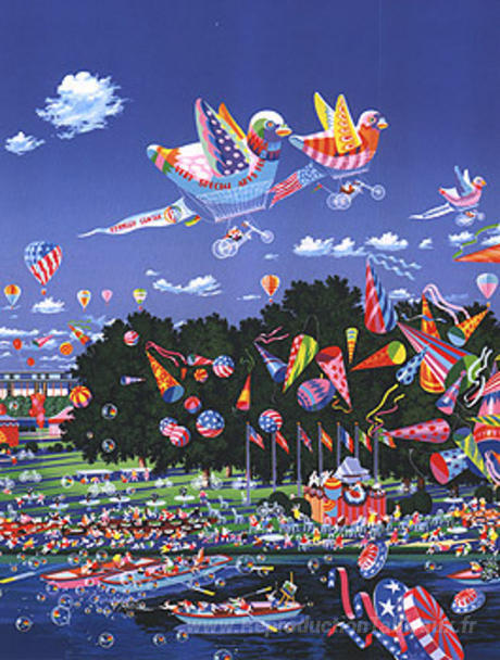 Nous vous proposons une reproduction artisanale sur toile du célèbre tableau 'Célébration très spéciale' de Hiro Yamagata, provenant du Musée de la Reproduction.