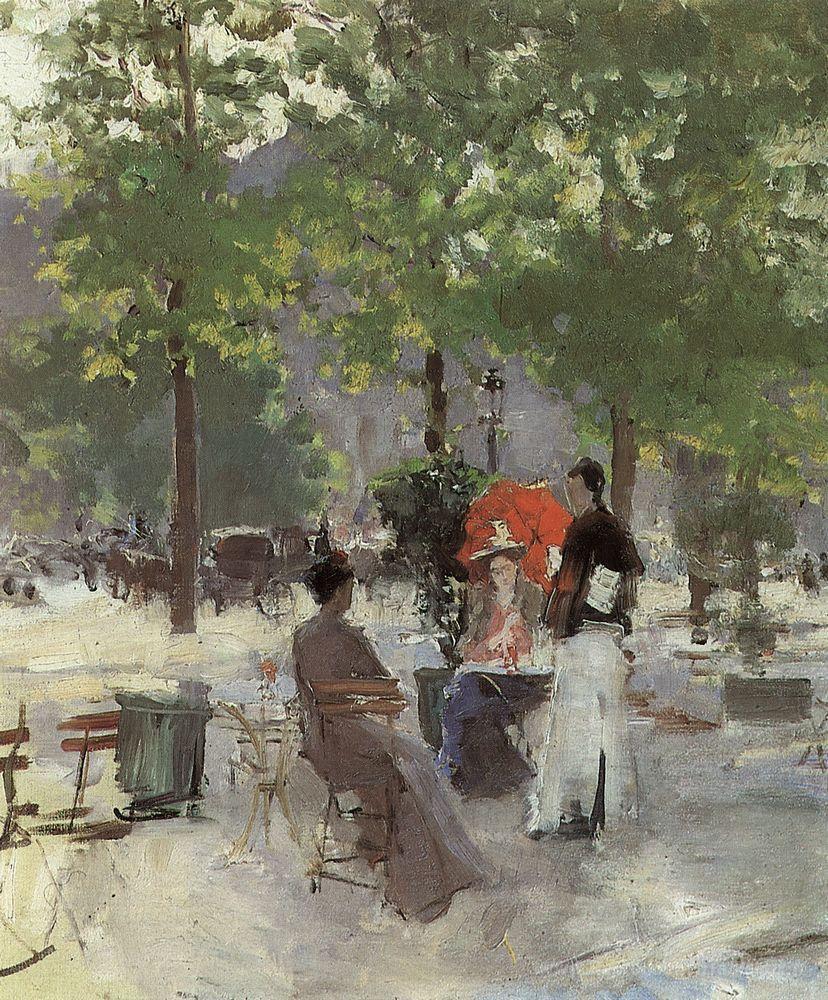 Nous vous proposons une reproduction artisanale sur toile du célèbre tableau 'Café de Paris' de Konstantin Korovin, provenant du Musée de la Reproduction.