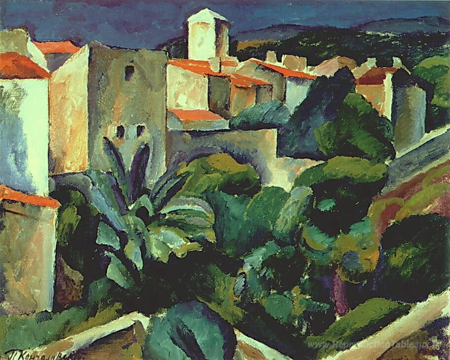 Nous vous proposons une reproduction artisanale sur toile du célèbre tableau 'Cassis' de Pyotr Konchalovsky, provenant du Musée de la Reproduction.
