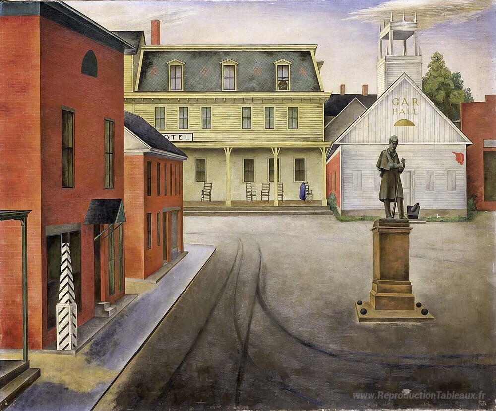 Nous vous proposons une reproduction artisanale sur toile du célèbre tableau 'Centre de la Ville' de O. Louis Guglielmi, provenant du Musée de la Reproduction.