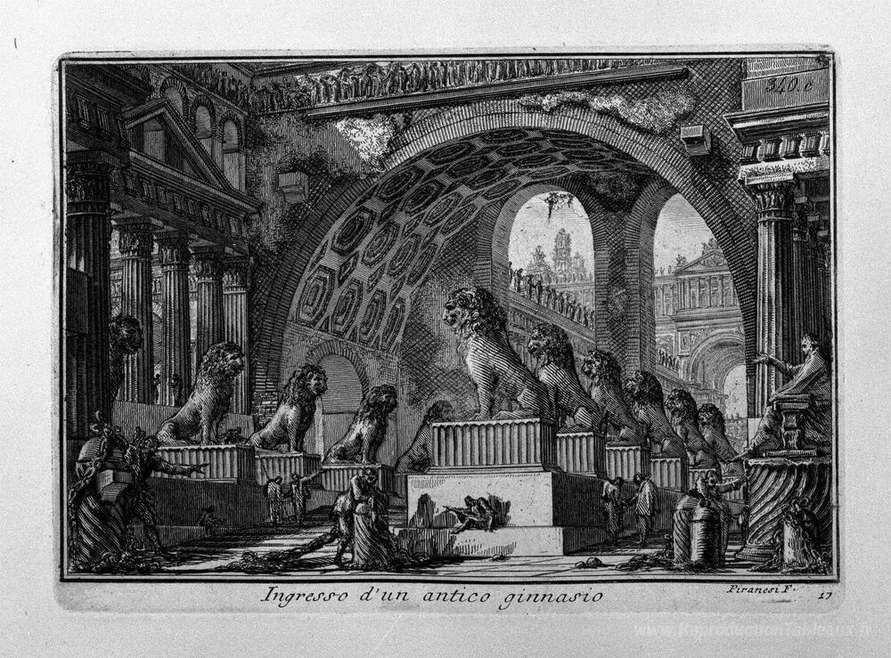 Nous vous proposons une reproduction artisanale sur toile du célèbre tableau 'Contribution d'un vieux lycée' de Giovanni Battista Piranesi, provenant du Musée de la Reproduction.
