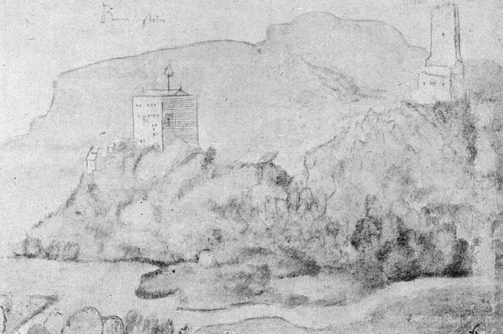 Nous vous proposons une reproduction artisanale sur toile du célèbre tableau 'Dessin des châteaux d'Alsacien Ortenberg (à droite) et de Ramste' de Hans Baldung, provenant du Musée de la Reproduction.