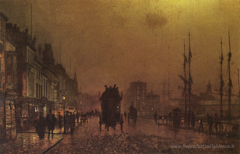 Nous vous proposons une reproduction artisanale sur toile du célèbre tableau 'Docks de Glasgow' de John Atkinson Grimshaw, provenant du Musée de la Reproduction.
