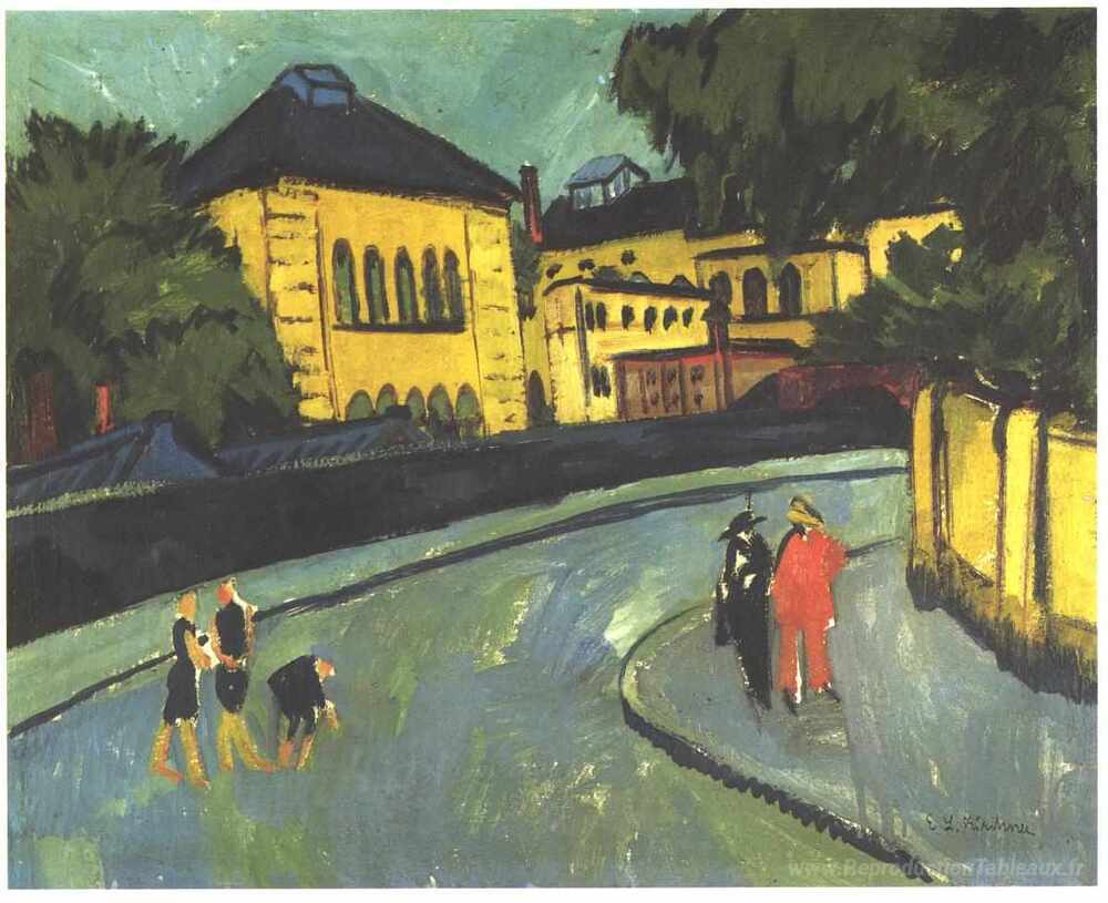 Nous vous proposons une reproduction artisanale sur toile du célèbre tableau 'Dresde Friedrichstadt' de Ernst Ludwig Kirchner, provenant du Musée de la Reproduction.