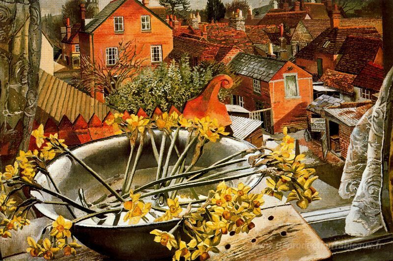 Nous vous proposons une reproduction artisanale sur toile du célèbre tableau 'Du studio de l'artiste' de Stanley Spencer, provenant du Musée de la Reproduction.