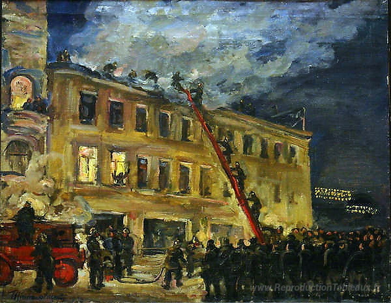 Nous vous proposons une reproduction artisanale sur toile du célèbre tableau 'Feu' de Pyotr Konchalovsky, provenant du Musée de la Reproduction.
