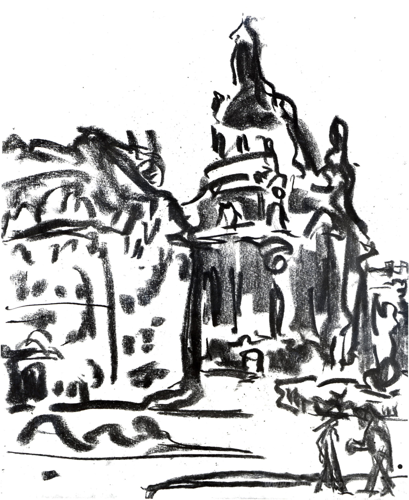 Nous vous proposons une reproduction artisanale sur toile du célèbre tableau 'Frauenkirche' de Ernst Ludwig Kirchner, provenant du Musée de la Reproduction.