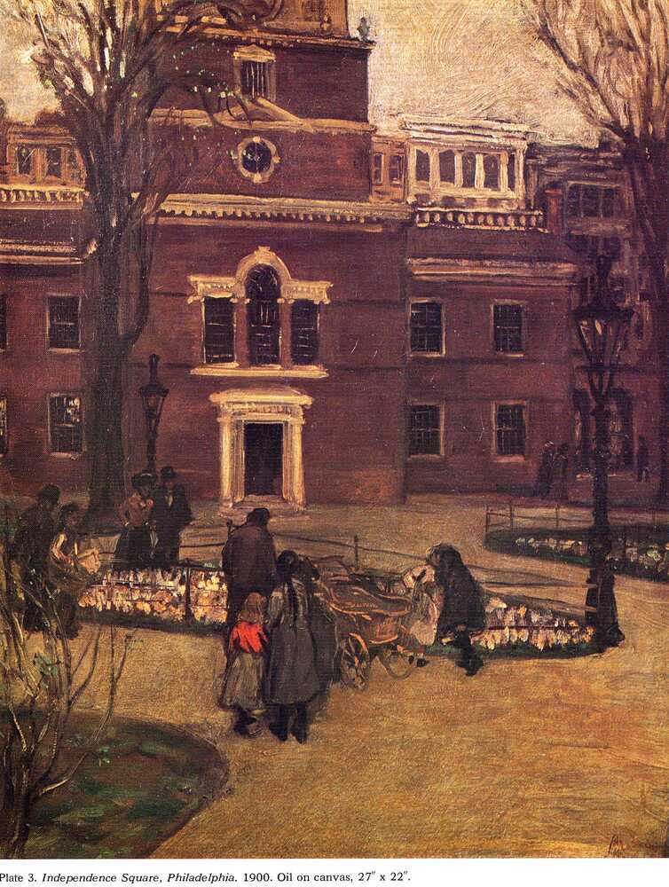 Nous vous proposons une reproduction artisanale sur toile du célèbre tableau 'Indépendance Square, Philadelphie' de John French Sloan, provenant du Musée de la Reproduction.