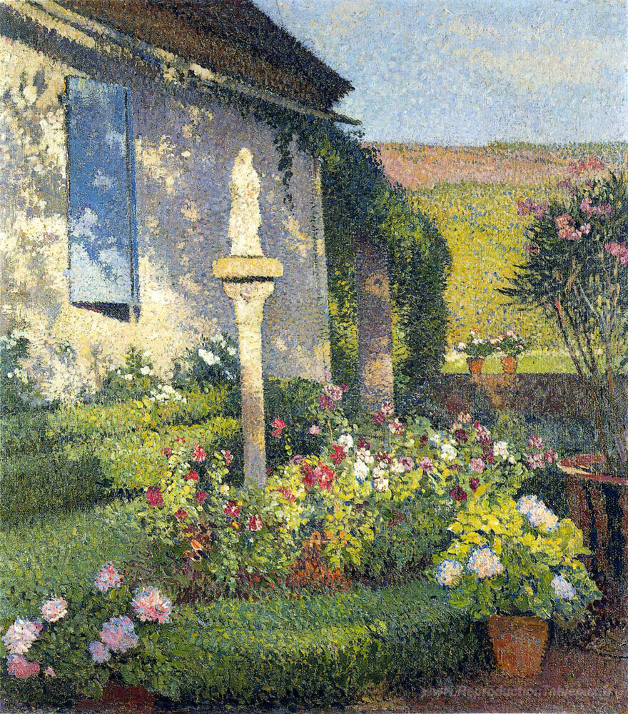 Nous vous proposons une reproduction artisanale sur toile du célèbre tableau 'Jardin de Labastide du ver à Marquayrol' de Henri Martin, provenant du Musée de la Reproduction.