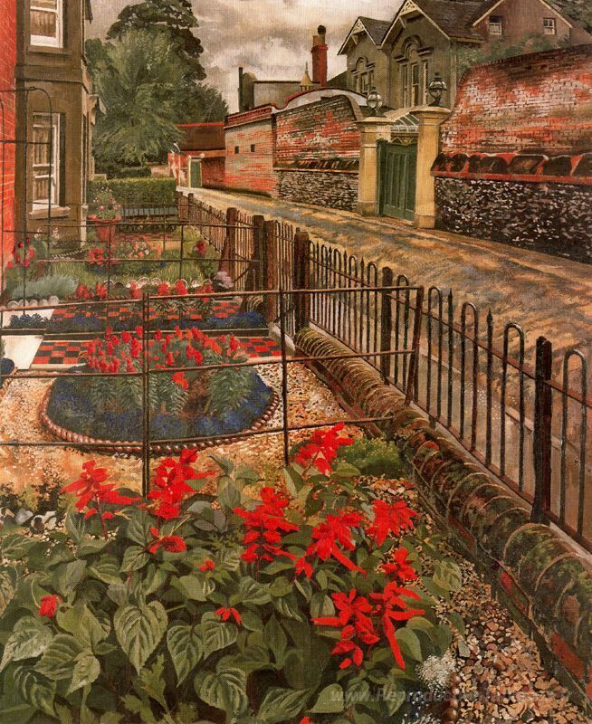 Nous vous proposons une reproduction artisanale sur toile du célèbre tableau 'Jardins dans la livre, Cookham' de Stanley Spencer, provenant du Musée de la Reproduction.