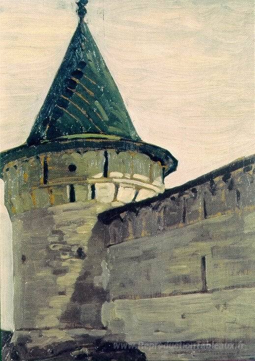 Nous vous proposons une reproduction artisanale sur toile du célèbre tableau 'Kostroma. Belfry du monastère d'Ipatievsky.' de Nicholas Roerich, provenant du Musée de la Reproduction.