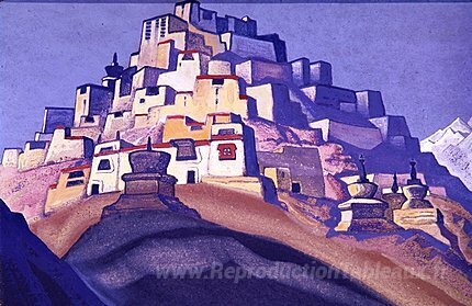 Nous vous proposons une reproduction artisanale sur toile du célèbre tableau 'L'île du repos' de Nicholas Roerich, provenant du Musée de la Reproduction.