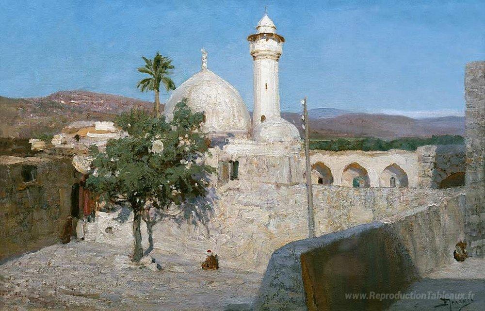 Nous vous proposons une reproduction artisanale sur toile du célèbre tableau 'La mosquée de Jenin' de Vasily Polenov, provenant du Musée de la Reproduction.