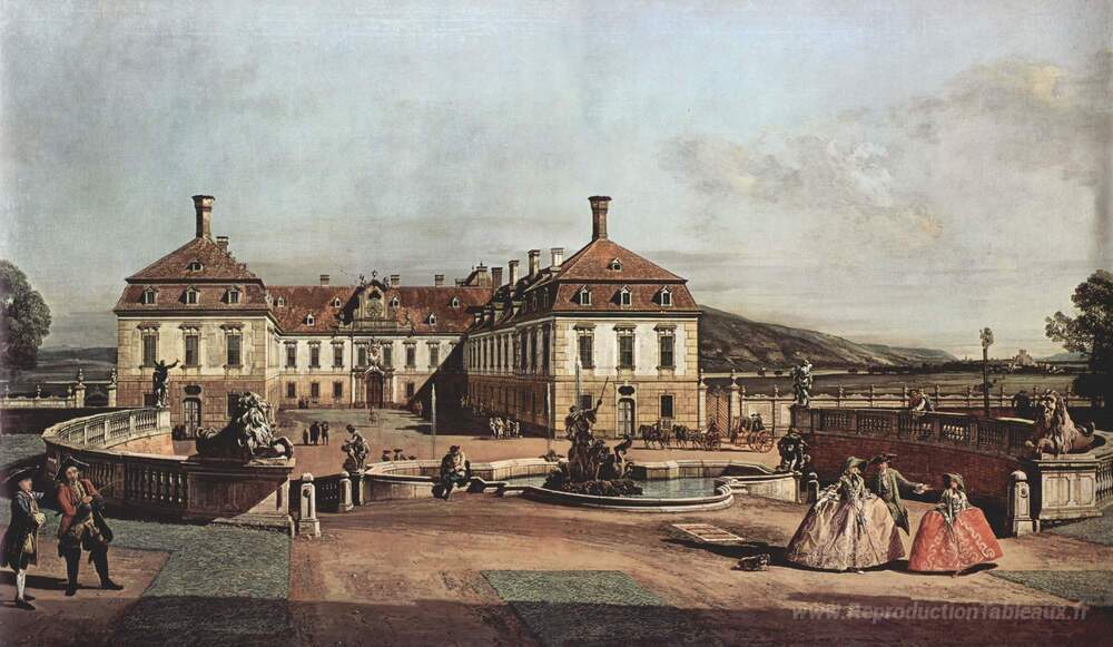 Nous vous proposons une reproduction artisanale sur toile du célèbre tableau 'La résidence d'été impériale, cour' de Bernardo Bellotto, provenant du Musée de la Reproduction.