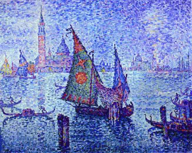 Nous vous proposons une reproduction artisanale sur toile du célèbre tableau 'La Voile verte' de Paul Signac, provenant du Musée de la Reproduction.