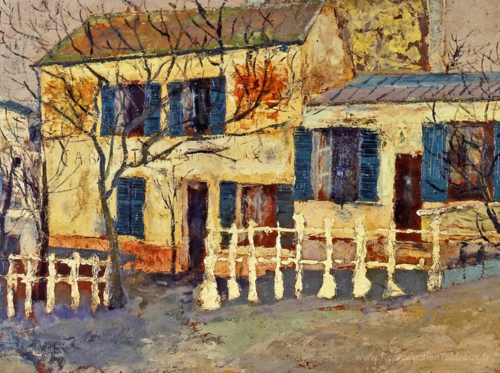 Nous vous proposons une reproduction artisanale sur toile du célèbre tableau 'Lapin Agile' de Maurice Utrillo, provenant du Musée de la Reproduction.