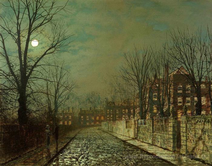 Nous vous proposons une reproduction artisanale sur toile du célèbre tableau 'L'arbre à essais' de John Atkinson Grimshaw, provenant du Musée de la Reproduction.
