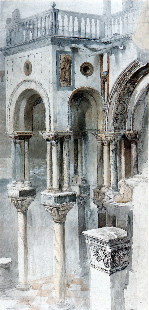 Nous vous proposons une reproduction artisanale sur toile du célèbre tableau 'Le côté sud de St Mark' de John Ruskin, provenant du Musée de la Reproduction.