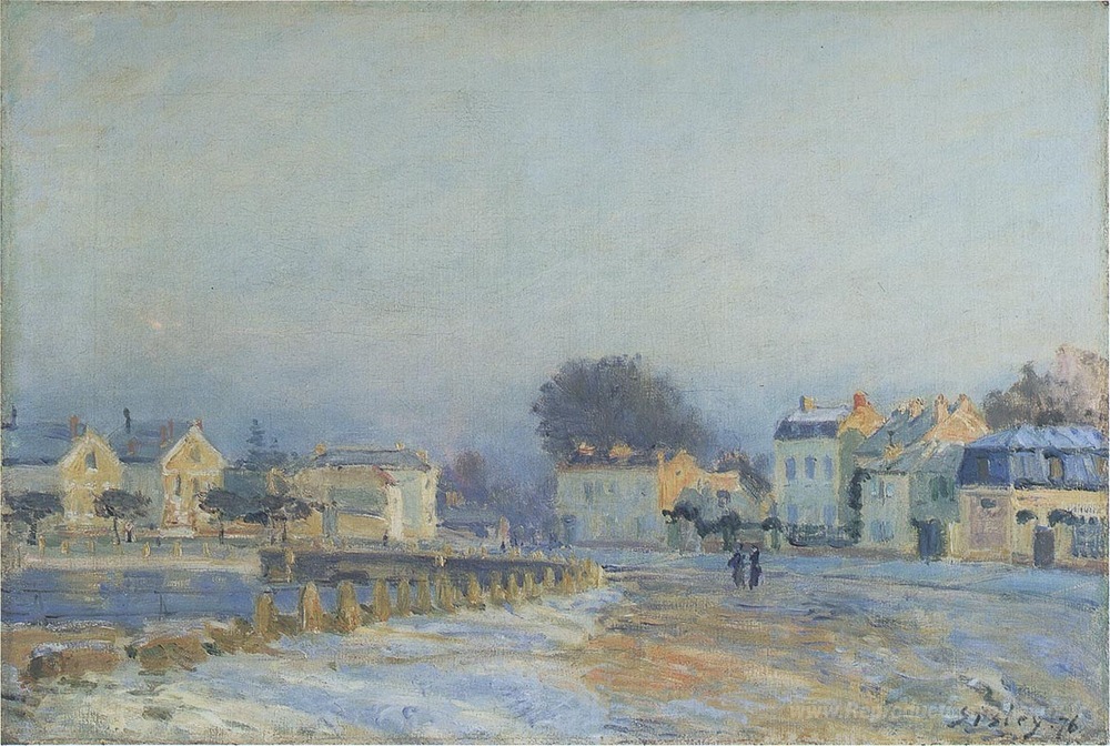 Nous vous proposons une reproduction artisanale sur toile du célèbre tableau 'Le lieu d'arrosage de Marly Le Roi Hoarfrost' de Alfred Sisley, provenant du Musée de la Reproduction.