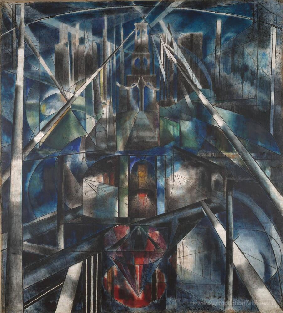 Nous vous proposons une reproduction artisanale sur toile du célèbre tableau 'le pont de Brooklyn' de Joseph Stella, provenant du Musée de la Reproduction.