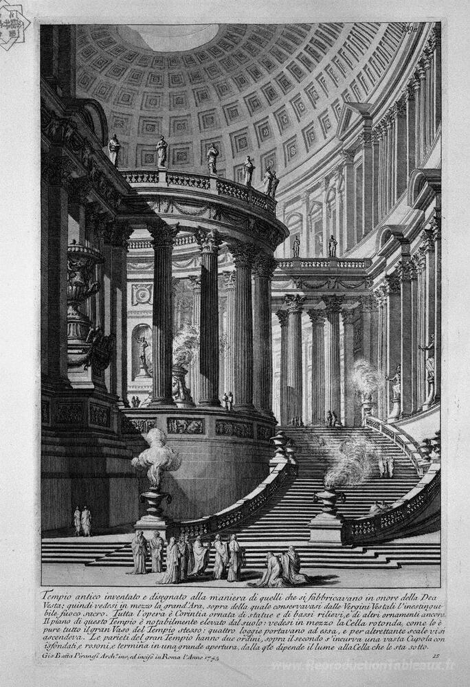 Nous vous proposons une reproduction artisanale sur toile du célèbre tableau 'Le temple ancien a inventé et conçu à la manière de ceux qui ont' de Giovanni Battista Piranesi, provenant du Musée de la Reproduction.