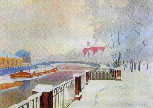Nous vous proposons une reproduction artisanale sur toile du célèbre tableau 'Leningrad. Fontanka et le jardin d'été à Frost.' de Anna Ostroumova-Lebedeva, provenant du Musée de la Reproduction.
