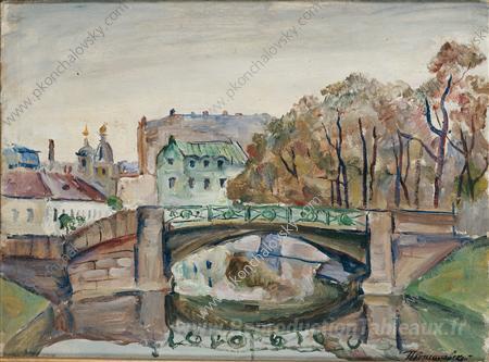 Nous vous proposons une reproduction artisanale sur toile du célèbre tableau 'Leningrad. Le pont sur le canal.' de Pyotr Konchalovsky, provenant du Musée de la Reproduction.