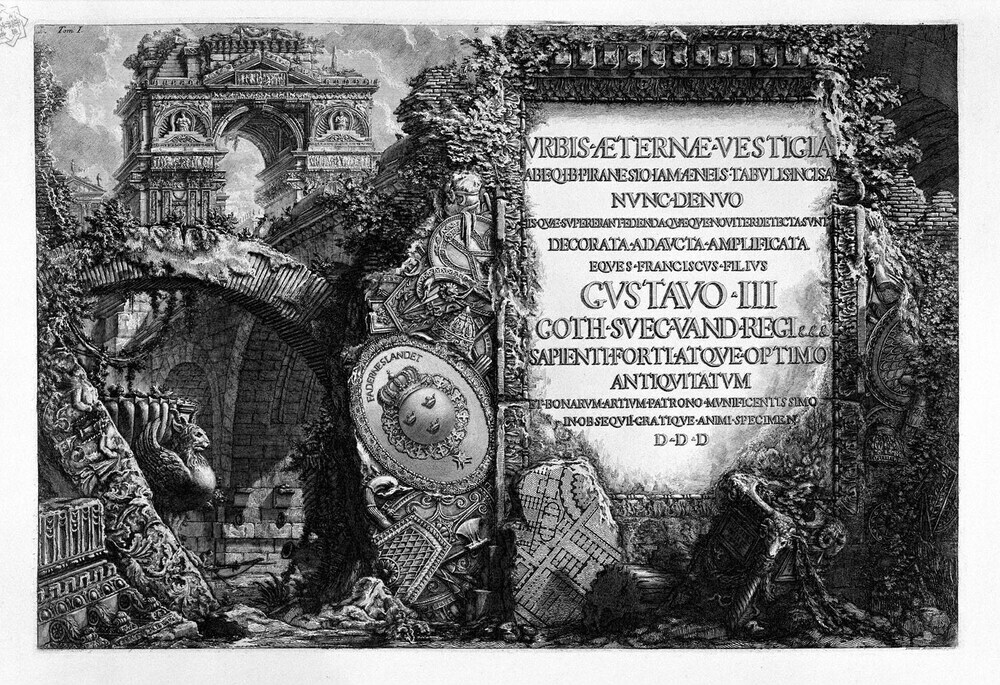 Nous vous proposons une reproduction artisanale sur toile du célèbre tableau 'Les antiquités romaines, t. 1, planche I.' de Giovanni Battista Piranesi, provenant du Musée de la Reproduction.