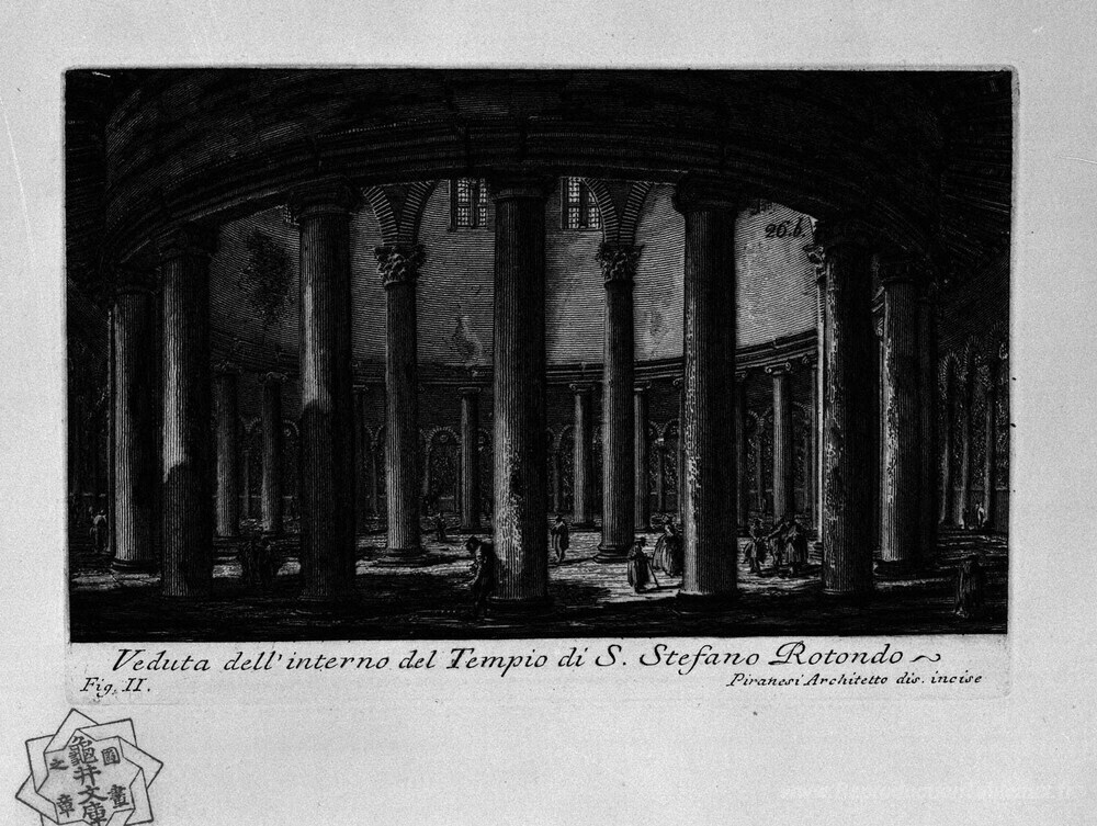 Nous vous proposons une reproduction artisanale sur toile du célèbre tableau 'Les antiquités romaines, t. 1, planche xxv. Santo Stefano Rotond' de Giovanni Battista Piranesi, provenant du Musée de la Reproduction.