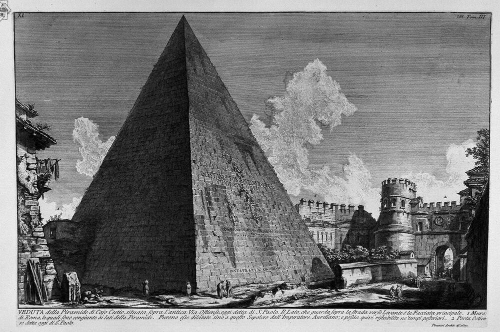 Nous vous proposons une reproduction artisanale sur toile du célèbre tableau 'Les antiquités romaines, t. 3, plaque xl. Vue de la pyramide de ' de Giovanni Battista Piranesi, provenant du Musée de la Reproduction.