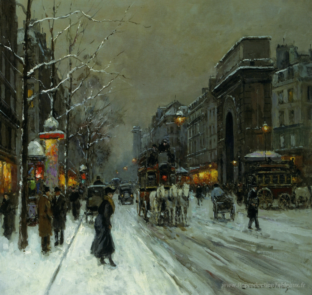 Nous vous proposons une reproduction artisanale sur toile du célèbre tableau 'Les Grands Boulevards Porte et Port Denis Martin' de Edouard Cortes, provenant du Musée de la Reproduction.